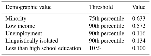 Table 2Demographic value thresholds derived from R extraction of all US Census Tracts.