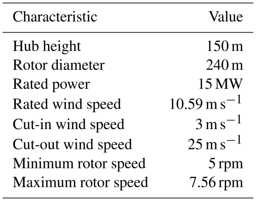 Gaertner, E., Rinker, J., Sethuraman, L., Zahle, F., Anderson, B., Barter, G. E., Abbas, N. J., Meng, F., Bortolotti, P., Skrzypinski, W., Scott, G., Feil, R., Bredmose, H., Dykes, K., Shields, M., Allen, C., and Viselli, A.: IEA Wind TCP Task 37: Definition of the IEA 15-Megawatt Offshore Reference Wind Turbine, Tech. rep., National Renewable Energy Lab. (NREL), Golden, CO (United States), https://doi.org/10.2172/1603478, 2020. a