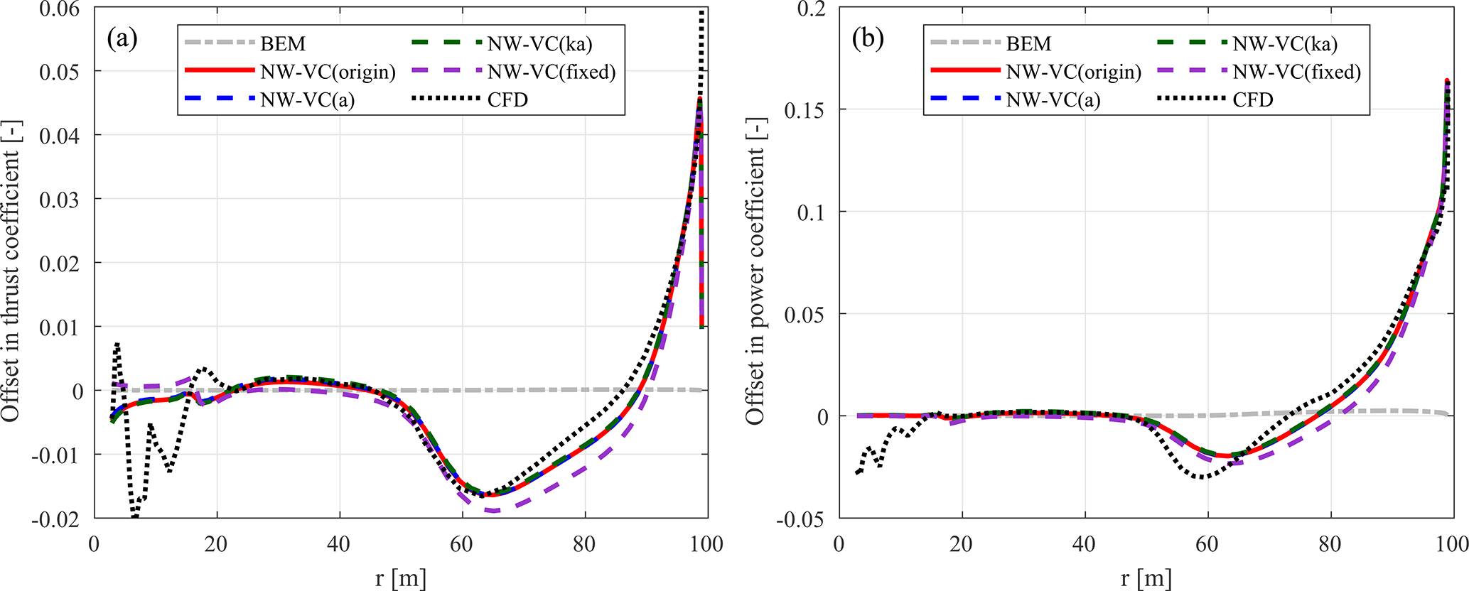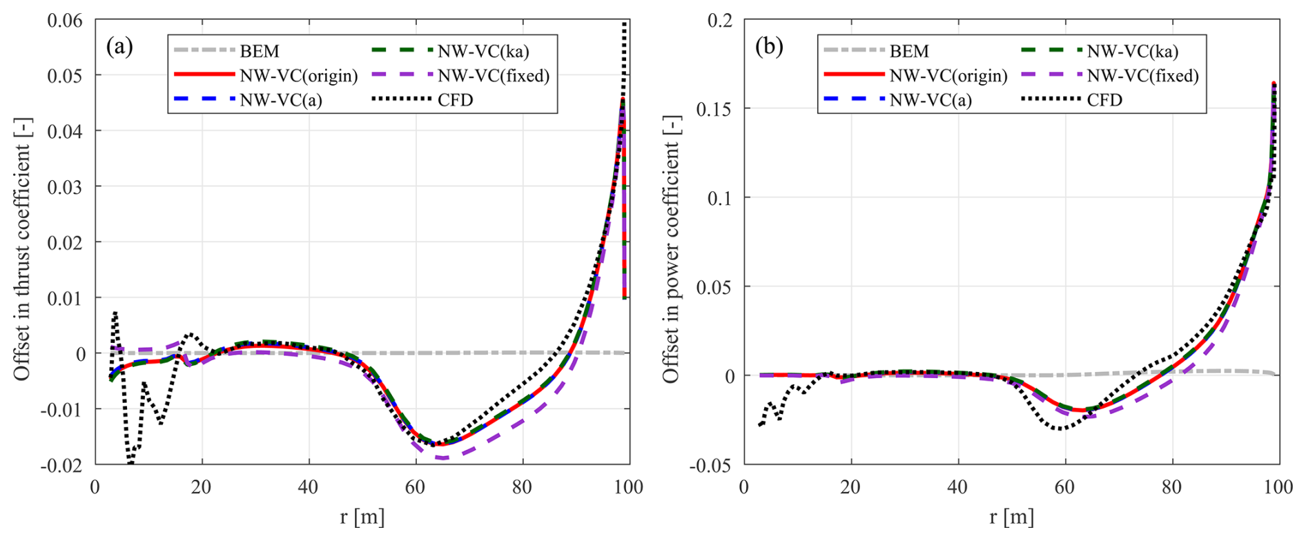 Unlike the idealized NW (ideal)-VC model that models the near-wake trailed-vortex radial induction using non-expanding helical vortex filaments and adds it to the far-wake vortex cylinder induction, the simplified NW-VC model uses the vortex cylinder model for the radial induction from the entire trailed wake. As a result, the influence of a finite number of blades on the radial induction is not included in NW-VC.