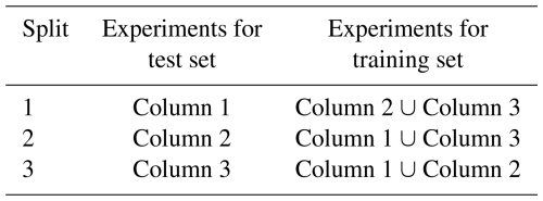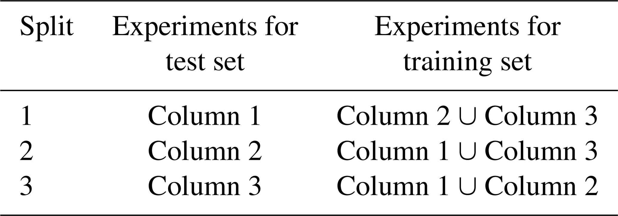 Table 2Composition of the splits used to create the training and test sets to evaluate the multivariate algorithm. The “columns” refer to columns 1, 2, and 3 of Table A1.