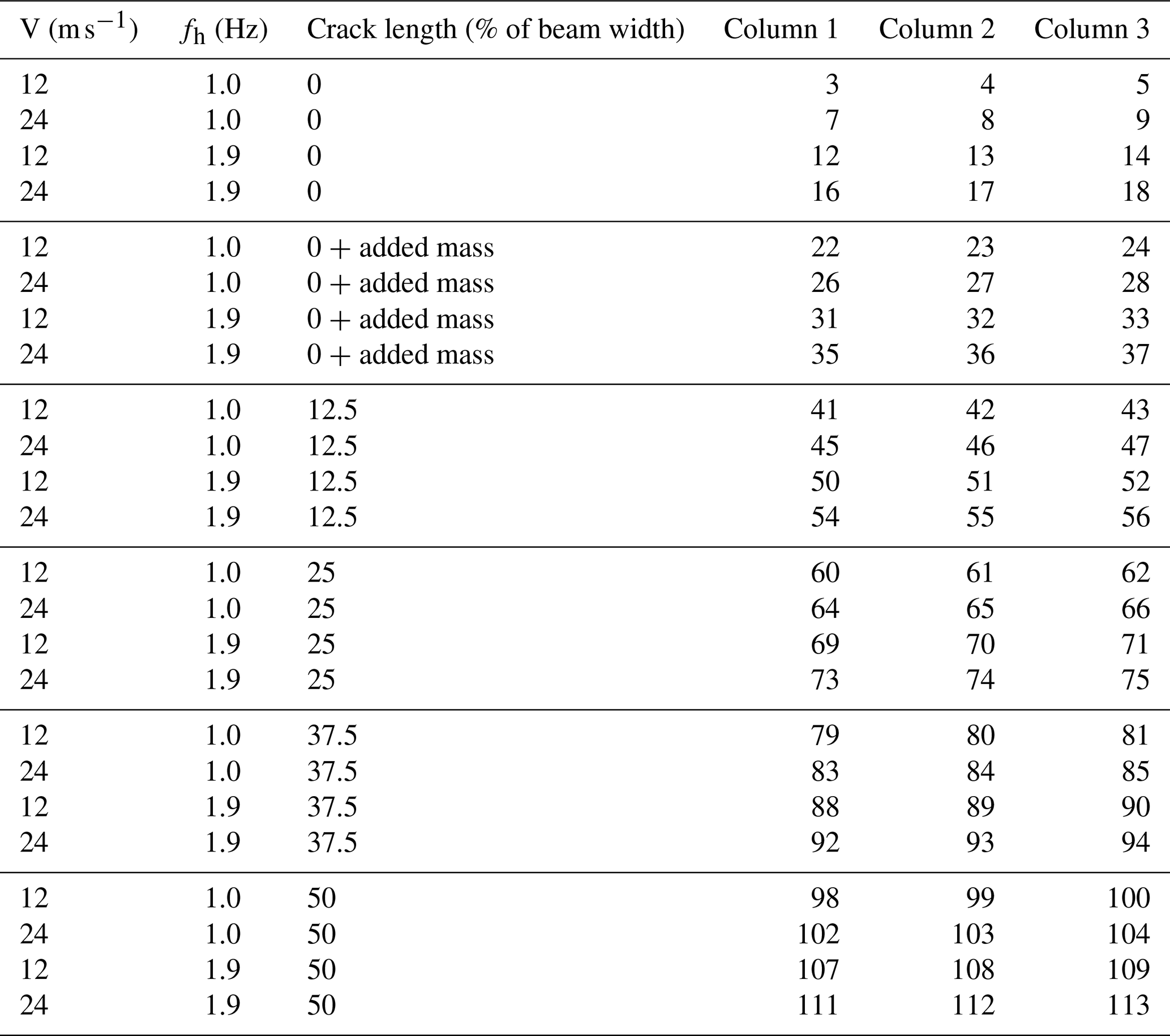 Table A2Overview of experiments where only harmonic forces are acting on the cantilever beam. This numbering is applied for both the 0 and 8° AoA datasets.