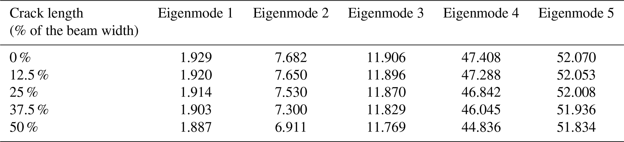 6.2 Evolution of the eigenfrequencies with increasing damage