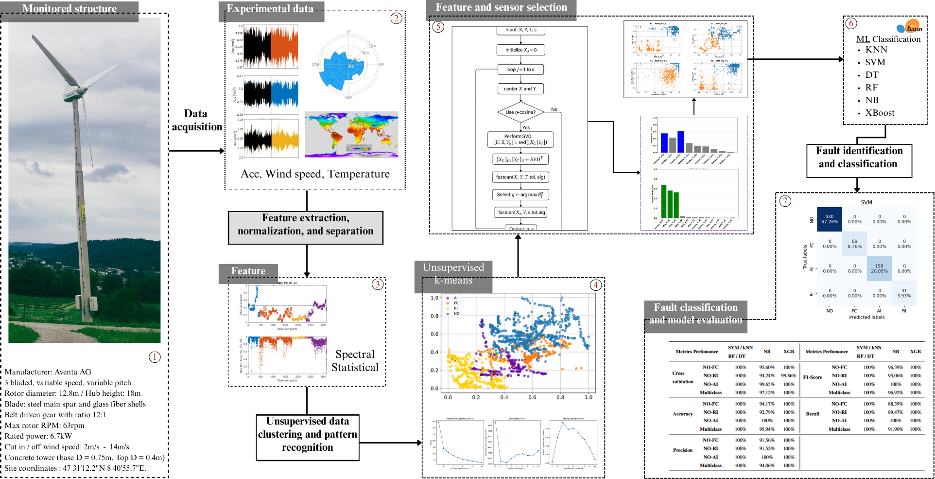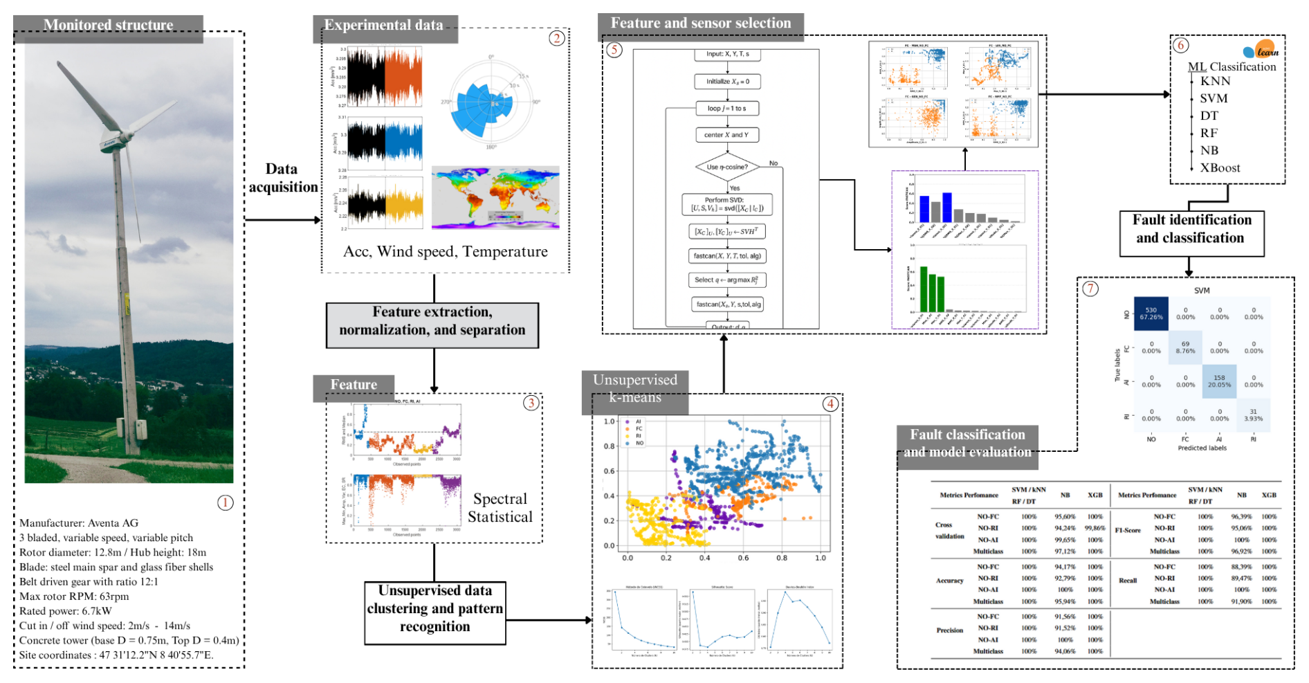 Figure 1Pipeline of the hybrid machine learning model for fault classification on the Aventa 6.7 kW wind turbine.