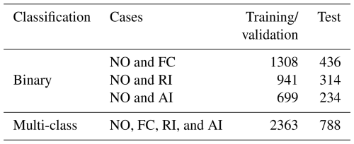 The outputs are subsequently used as inputs for the feature and sensor selection. Furthermore, the samples were randomly divided, and the clustered dataset was split into training/validation 75 % and test 25 %, which were used for model construction and evaluation, as shown in Table 4. Each classifier was assessed using a 5-fold cross-validation procedure to enhance training accuracy, which was achieved by randomly partitioning the training dataset into five distinct subsets.