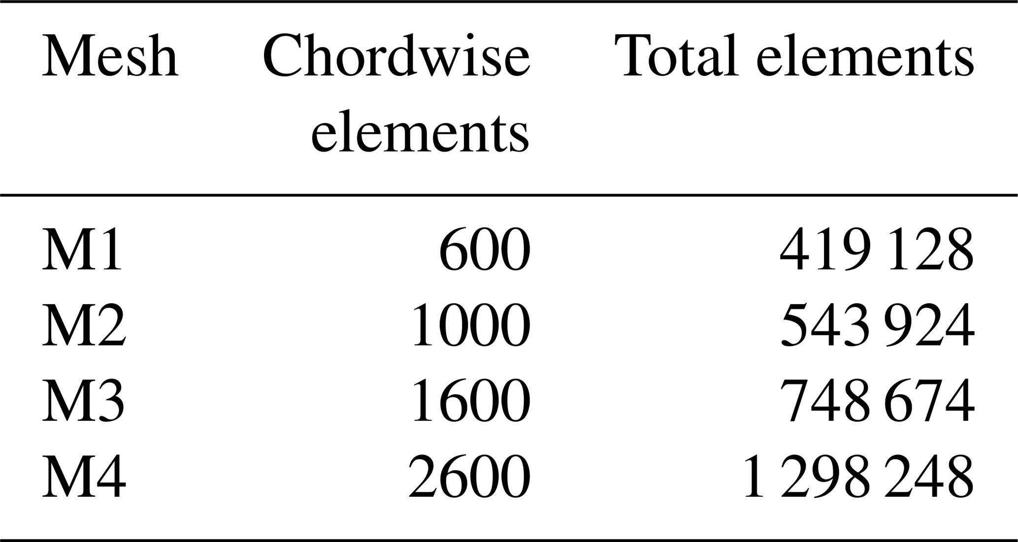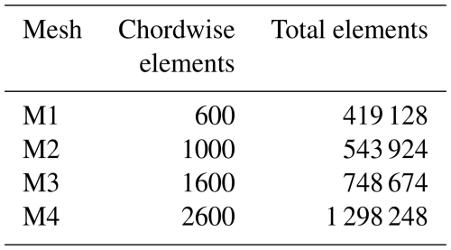 Table 4Total and chordwise number of elements for tested computational grids.