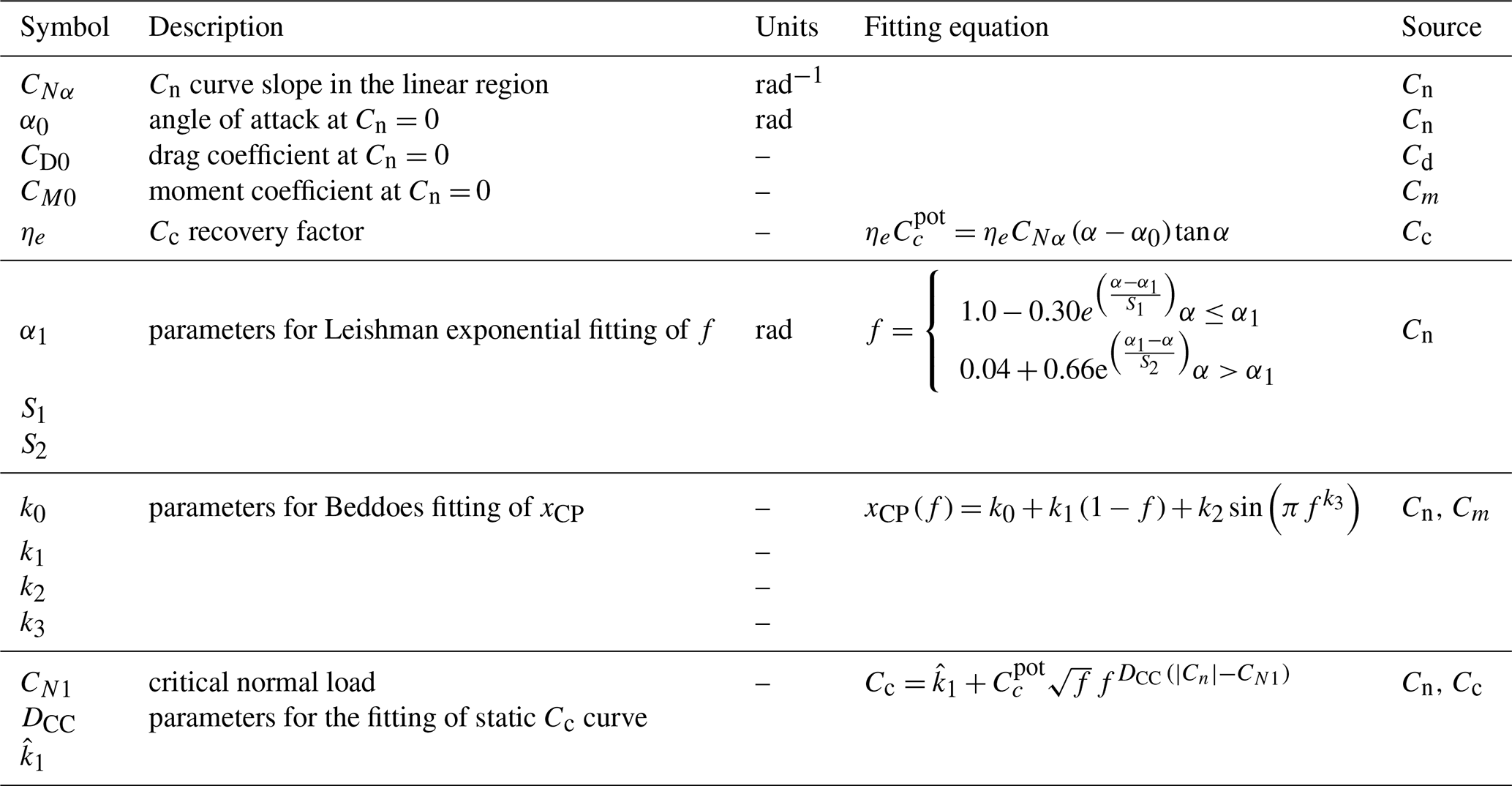 Table 5Static parameters for Beddoes–Leishman (BL)-type dynamic stall models used in the current study.