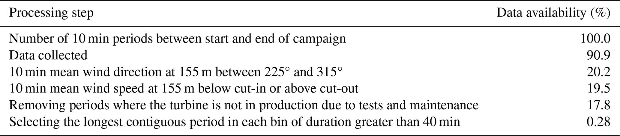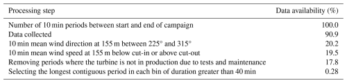Table 2The data processing steps and the resulting availability. Note that the data availability in each subsequent row is expressed as a percentage of the total data available between the start and end of the campaign.