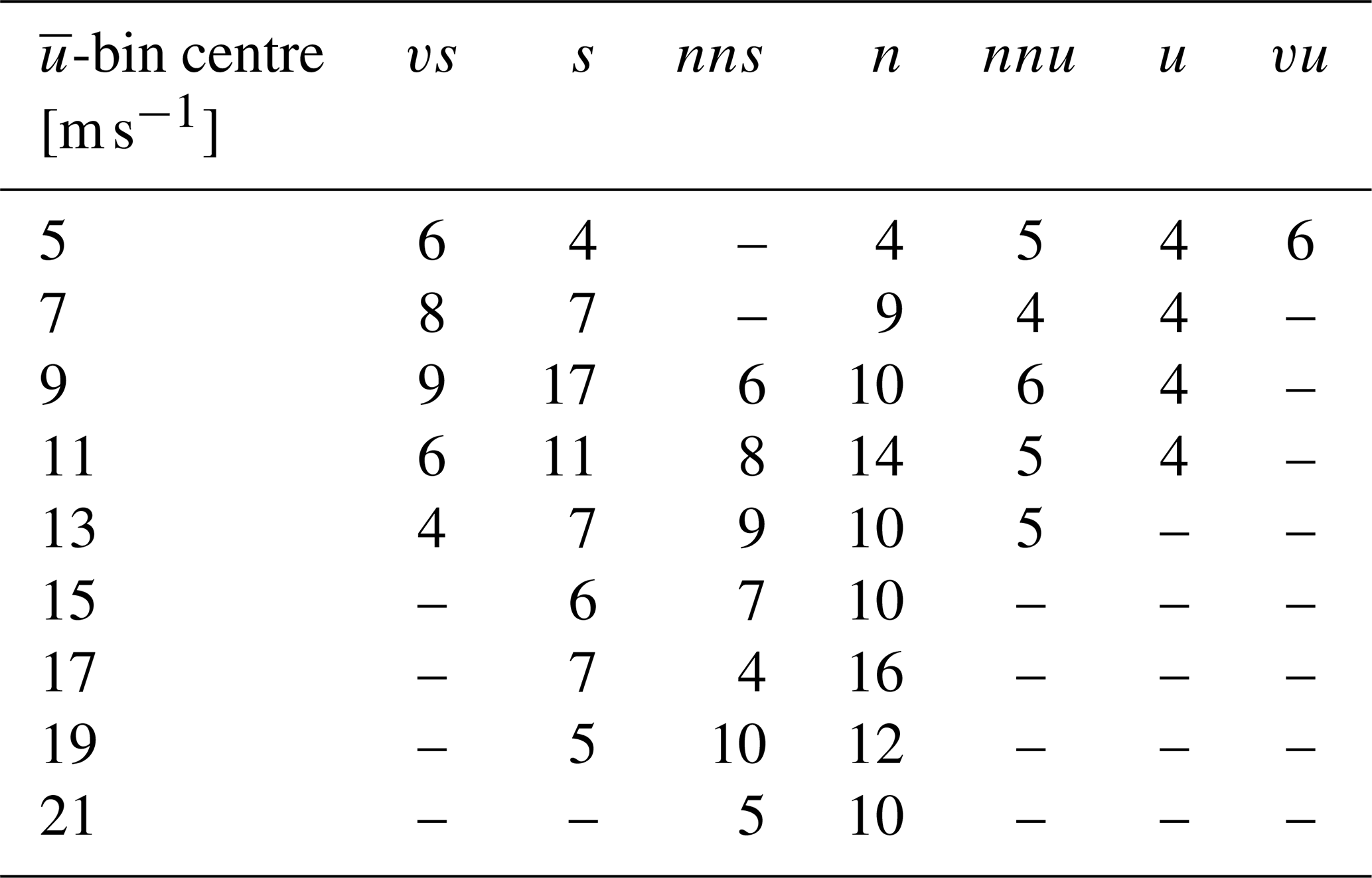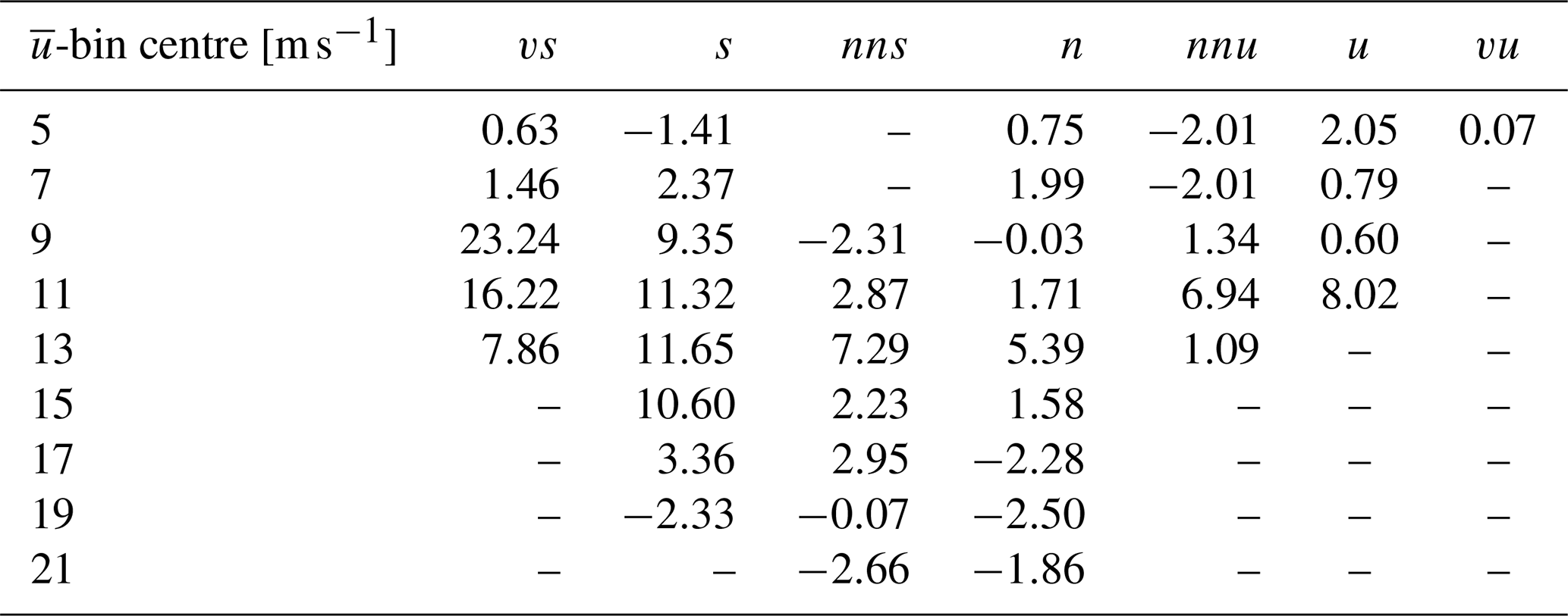 Table 4The number of contiguous 10 min periods (Nbin) per mean wind speed and stability bin used to compute the auto-spectra of turbulence.