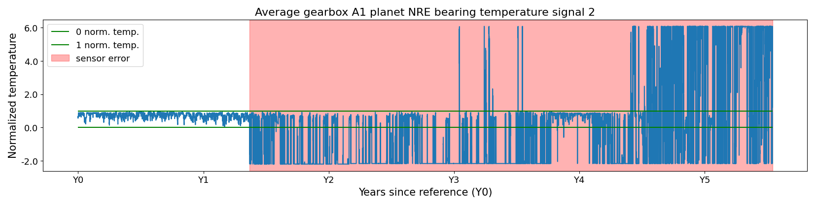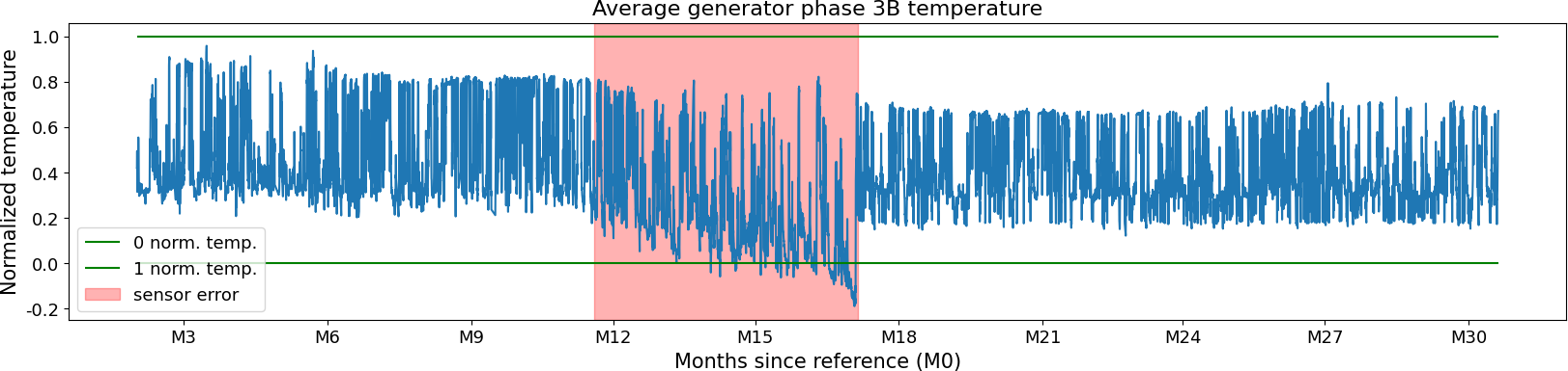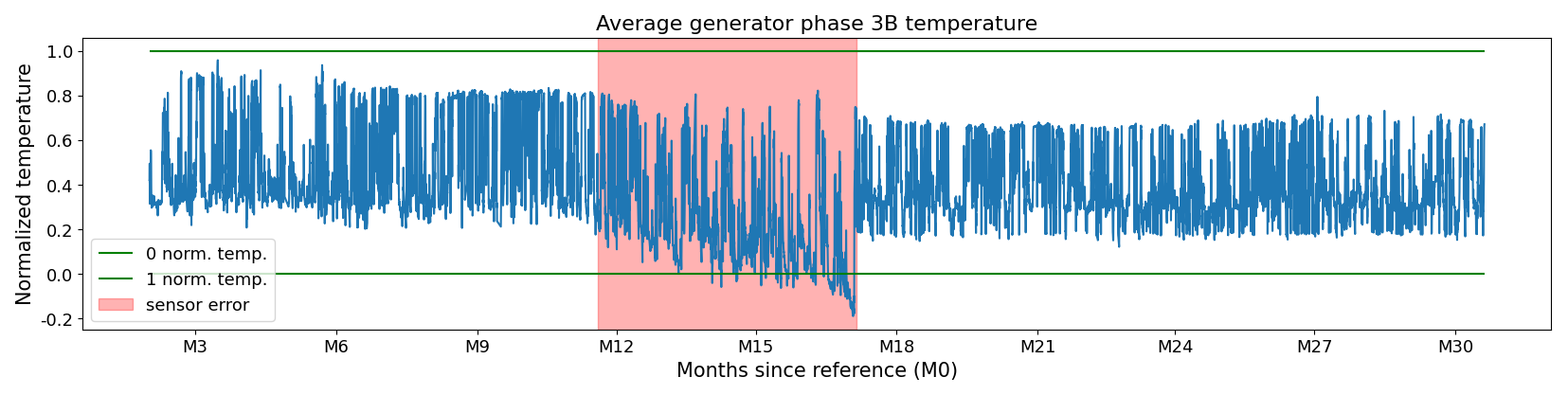 Figure 4Sensor failure in the temperature signal of the turbine in WF3. The sensor failure is a combination of types, i.e., bias and scaling.
