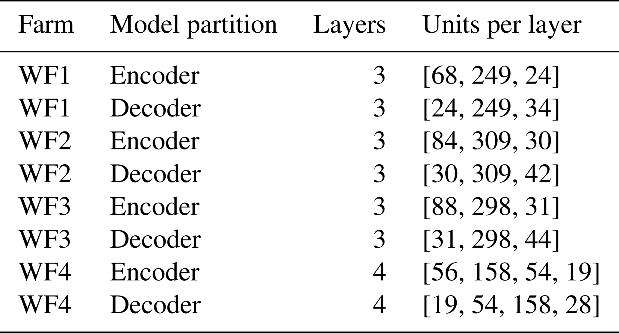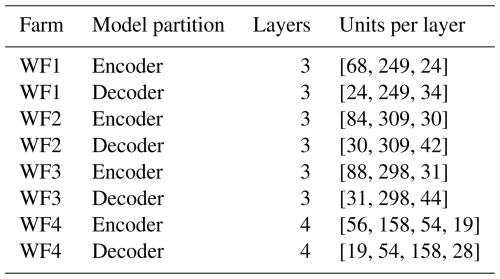 Table 2Overview of the number of layers and number of units per layer for the best model for WF1, WF2, WF3, and WF4.