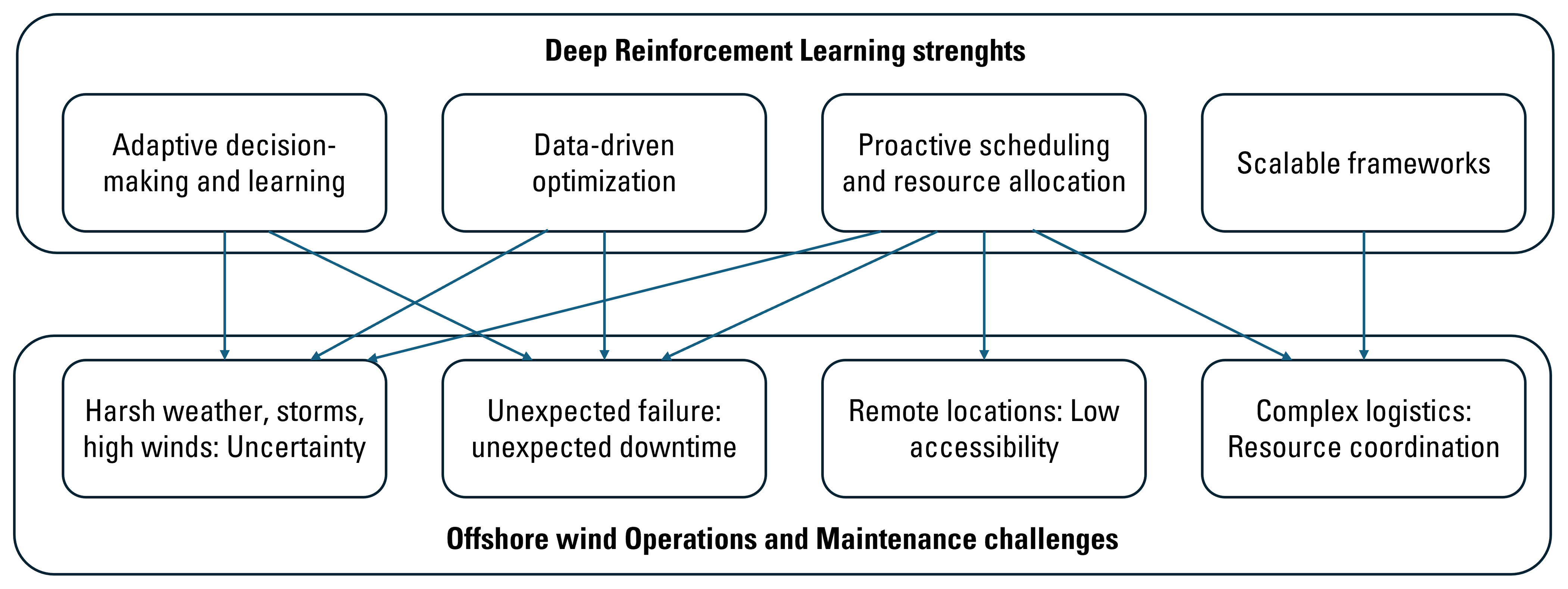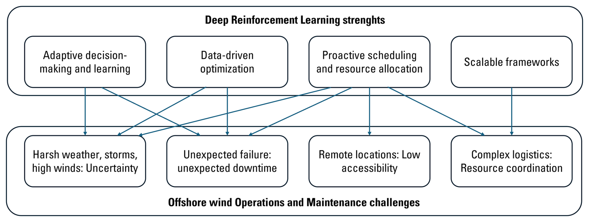 Figure 1Challenges of offshore wind maintenance and opportunities for deep reinforcement learning methods.