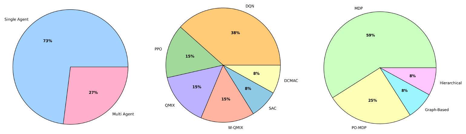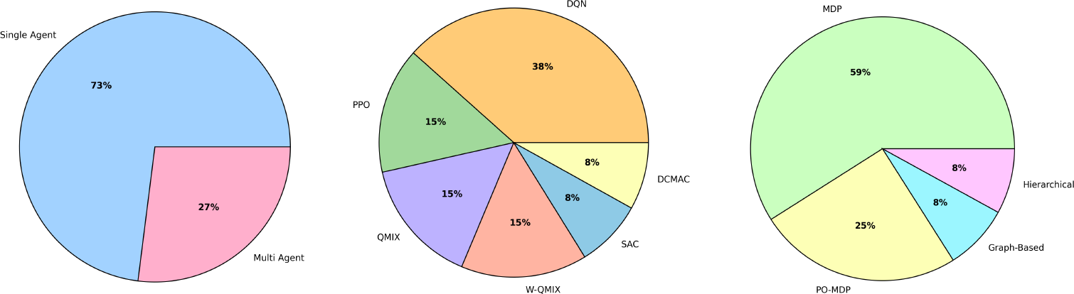 Having examined both single-agent and multi-agent DRL frameworks for maintenance planning, it is clear that the choice of algorithm is intricately linked to how the underlying problem is modelled. The next section focuses on the core methodologies and decision frameworks used, ranging from Markov decision processes (MDPs) and partially observable MDPs (POMDPs) to hierarchical and graph-based representations, which provide the foundation for these DRL approaches. This discussion will clarify how the characteristics of the problem formulation drive the design and performance of the DRL models.