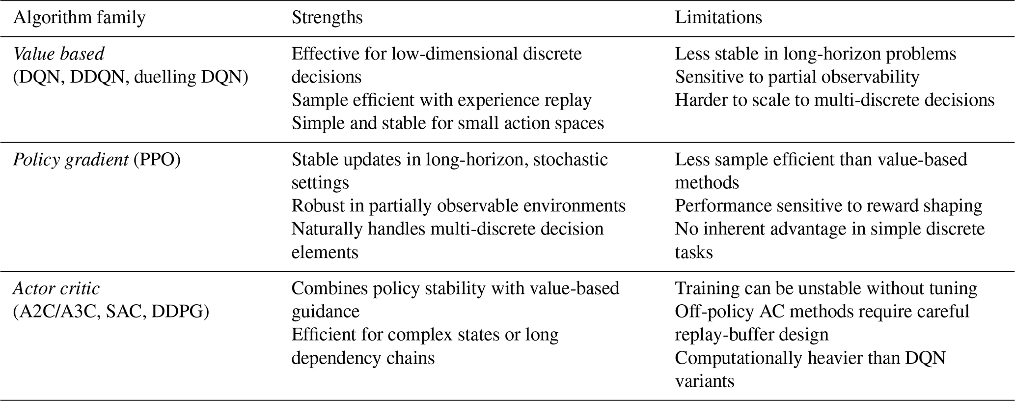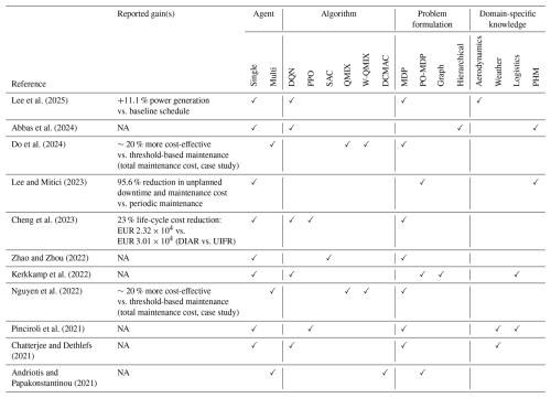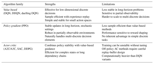Table 1Comparison of single-agent deep reinforcement learning algorithm families for offshore wind operations and maintenance.