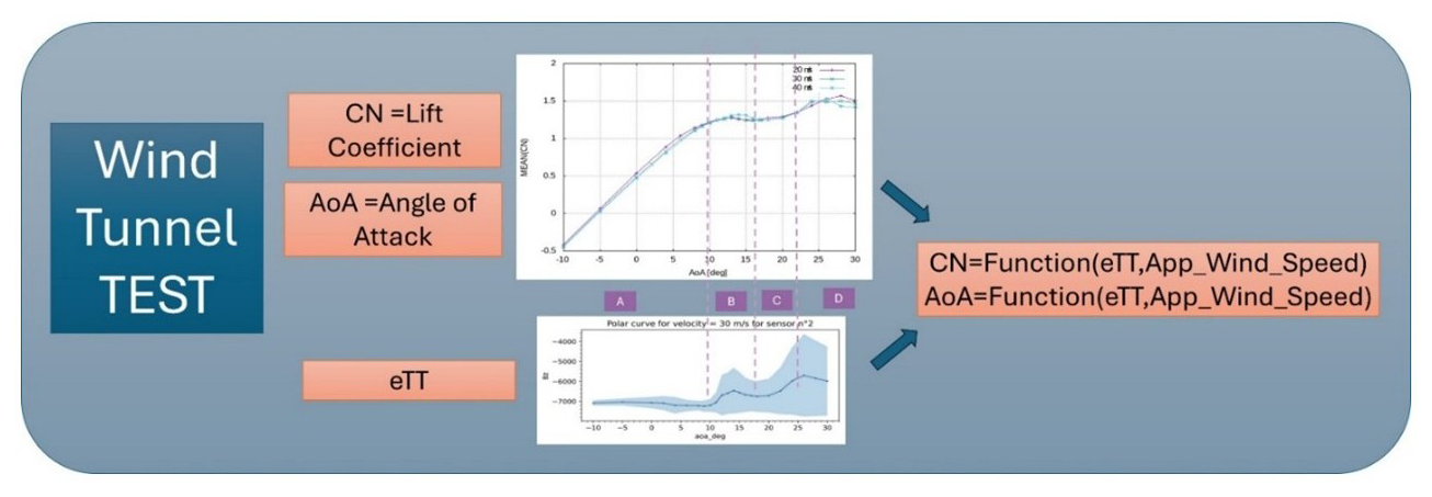 Finally, wind tunnel experimentation is conducted using a machine learning method to link eTT values to AoA and lift force. The training was carried out on four eTT sensors at 15 % chord.