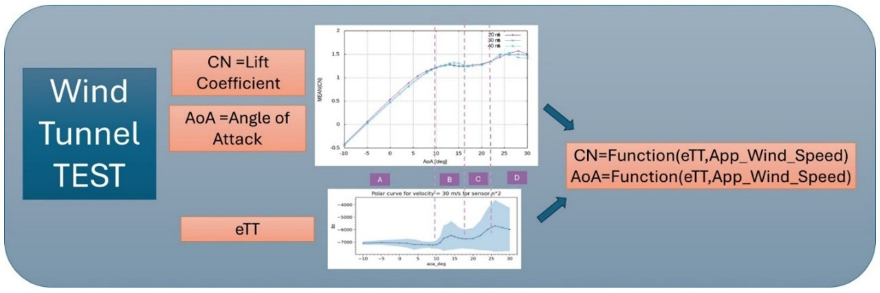 The goal of the study is also to test an algorithm to obtain an estimation of angle of attack (AoA) and loads on wind turbine blades. The algorithm integrates applied mathematical techniques to transform sensor raw data in terms of aerodynamical physical properties. These applied mathematical methods need to be trained in a wind tunnel.