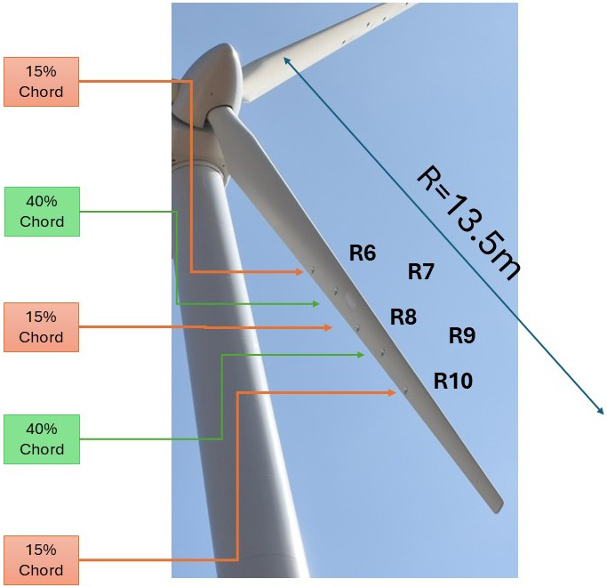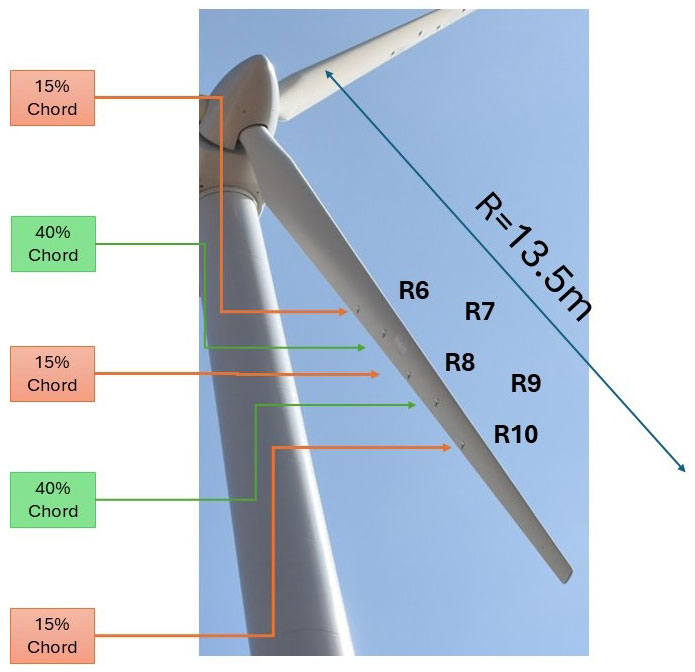 In actual practice, when the wind is below the rated speed, operators maintain a constant ideal blade pitch while adjusting the rotor speed to keep the optimal TSR, even when the wind changes. These ideal settings may vary from those suggested by the manufacturer due to local aerodynamic effects and other influences unique to each site. Over time, the best settings can also change because of blade wear, different weather conditions and other factors. To address these challenges, there are existing methods that can be found in the literature like the extremum seeking control (Creaby et al., 2009) and, more recently, the log-power proportional-integral extremum seeking (Kumar and Rotea, 2022). The aim of this study is to experiment with a new approach to optimize the aerodynamics of wind turbine blades so as to maximize production revenues and extend service lifetime. The analysis of the wind turbine power curve was conducted as a function of the flow condition on the suction side of a wind turbine blade.