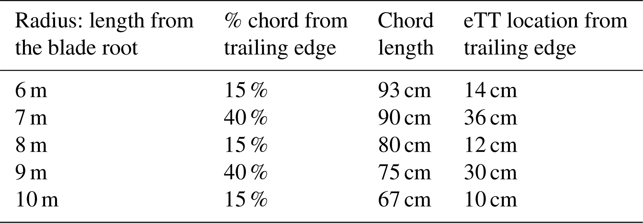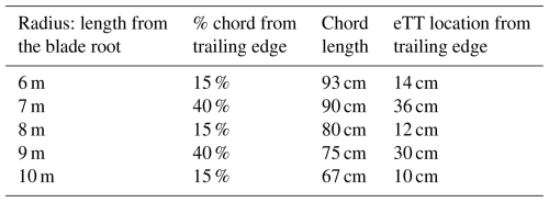 At the same time, the eTT sensors provide raw data on five positions on the blade's suction side (Fig. 7 and Table 1) in such a way that it is possible to differentiate the corrected GenPower curve in detached and attached behaviours.