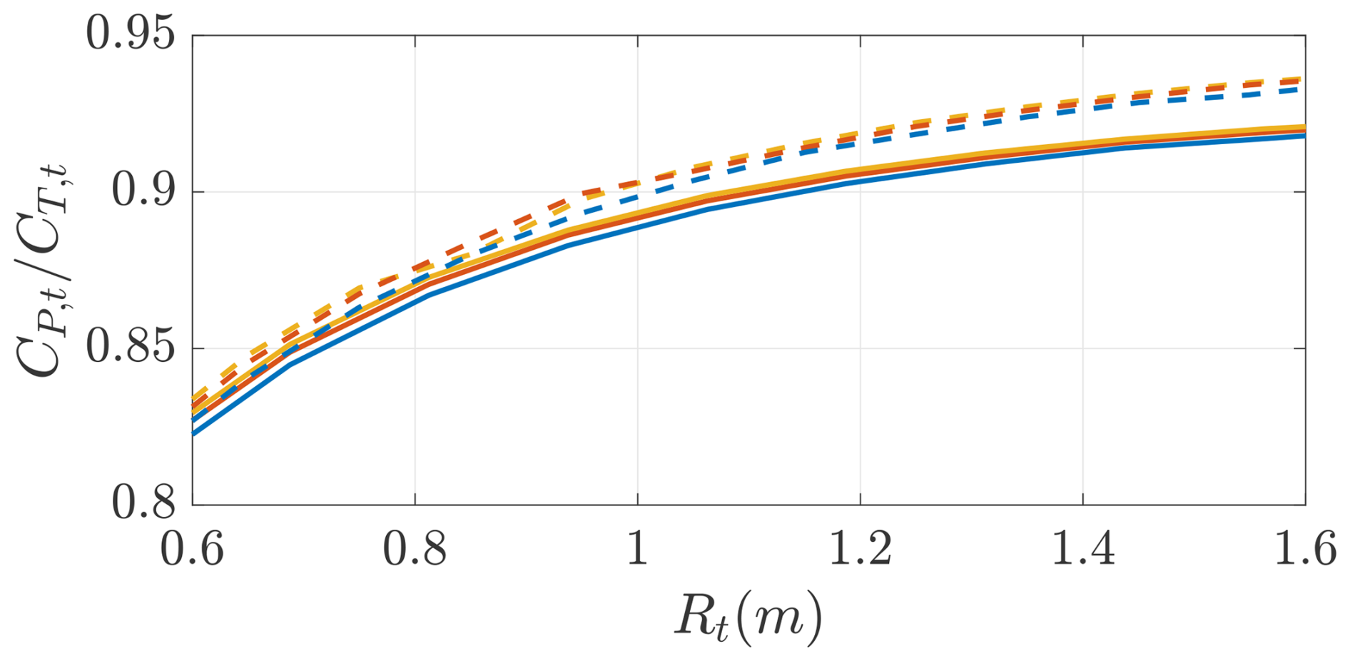 where CT,t is the thrust coefficient of the onboard wind turbines, and At is the total rotor area. We define the onboard wind turbine radius as a function of the wing semi-span as