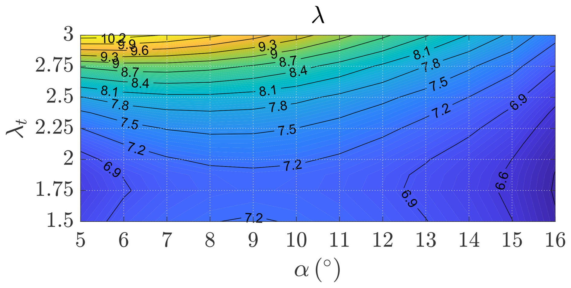 (13) λ = E ( 1 - a f ) = 1 2 ρ A C L v a 2 ( 1 - a f ) 1 2 ρ A ( C D , p + C D , i + A t A C T , t ) v a 2 = C L ( 1 - a f ) C D , p + C D , i + π 2 AR ξ t 2 C T , t .