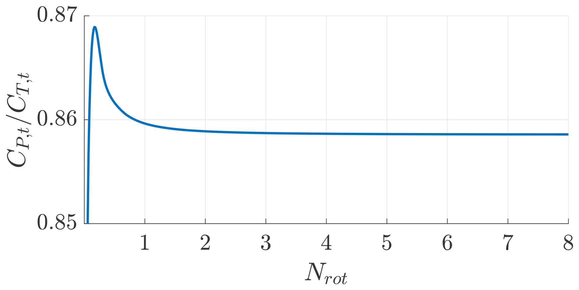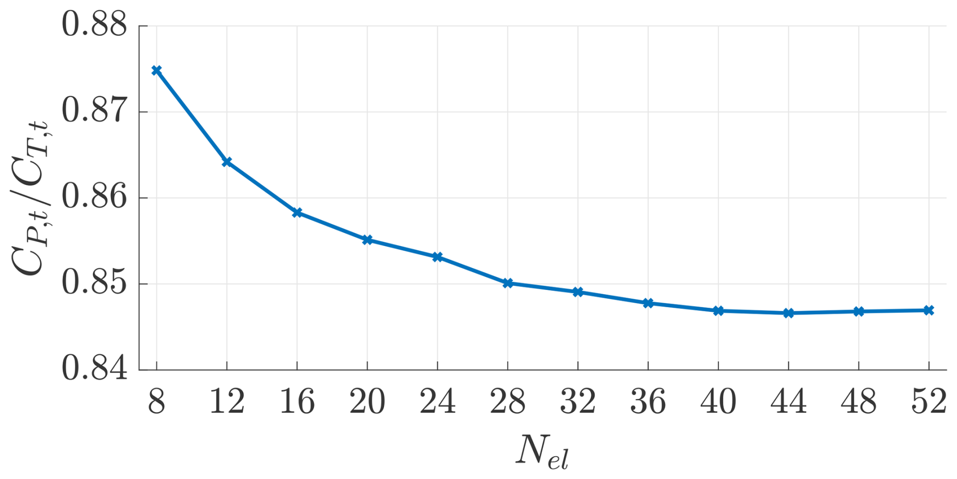 Figure B2Turbine CP,t/CT,t as a function of the lifting-line number of elements.