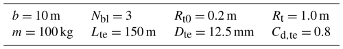 CD,a is the three-dimensional coefficient due to the airfoils, and CD,te is the equivalent tether drag (Trevisi et al.2020):