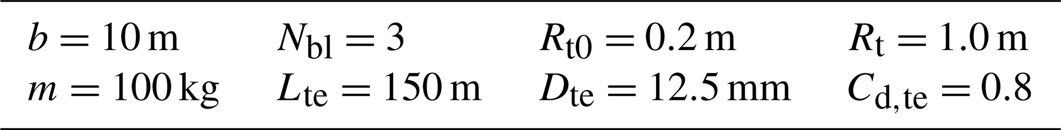 where Cd,te is the tether section drag coefficient, Lte is the tether length, and Dte is the tether diameter.