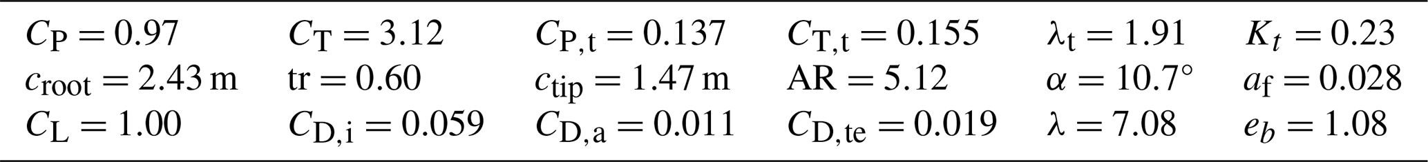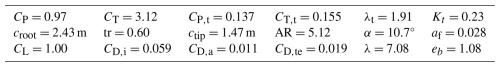 The employed model to estimate the thrust coefficient CT,t of the onboard turbines is described in Sect. 2.2, while the models for the aerodynamic coefficients CD,a and CD,i are detailed in Sect. 2.3.