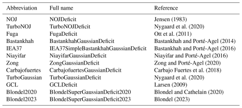 - Appendix A: List of the 12 wake models