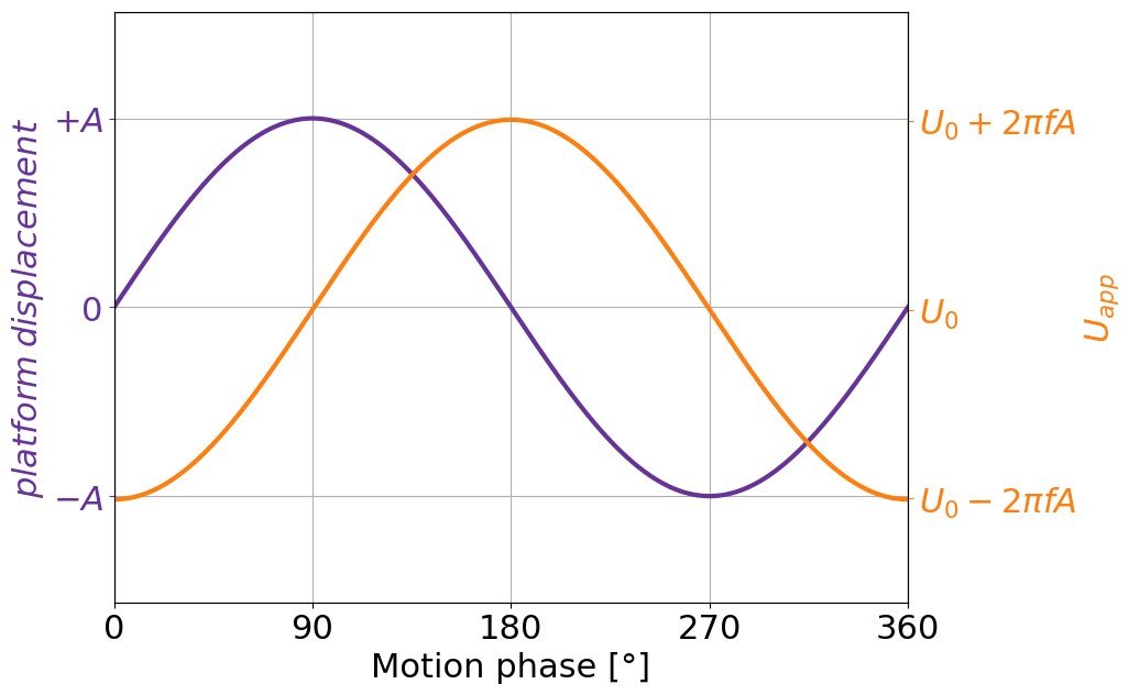 As qualitatively illustrated in Fig. 6b, the platform motion induces velocity oscillations in the wake that propagate downstream and may influence subsequent turbines. The objective of this section is to quantify these oscillations in terms of phase shift relative to the platform motion and amplitude. To this end, only the results from the surge and pitch simulations are presented and compared.