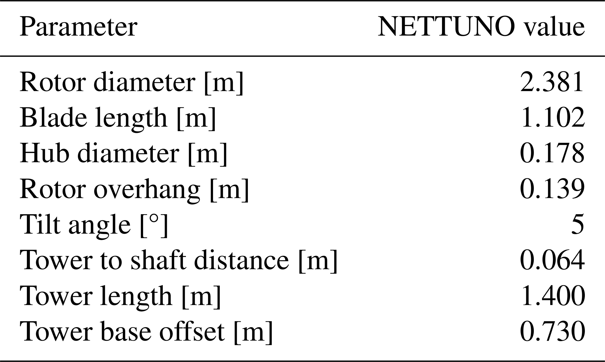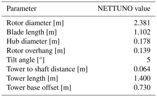 Table 1Geometry of the wind turbine used in the experiment (Fontanella et al., 2025).